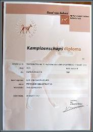 9 april 2012 Internationale PaasShow te Leeuwarden. Jeugdklasse; 1 ste en uitmuntend. Keurmeester; Mevr.S. Weber- Martegani (CH) |